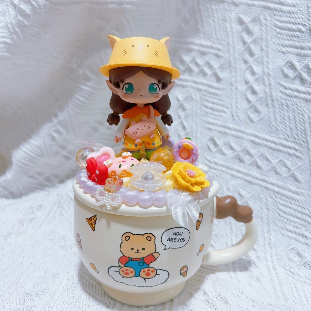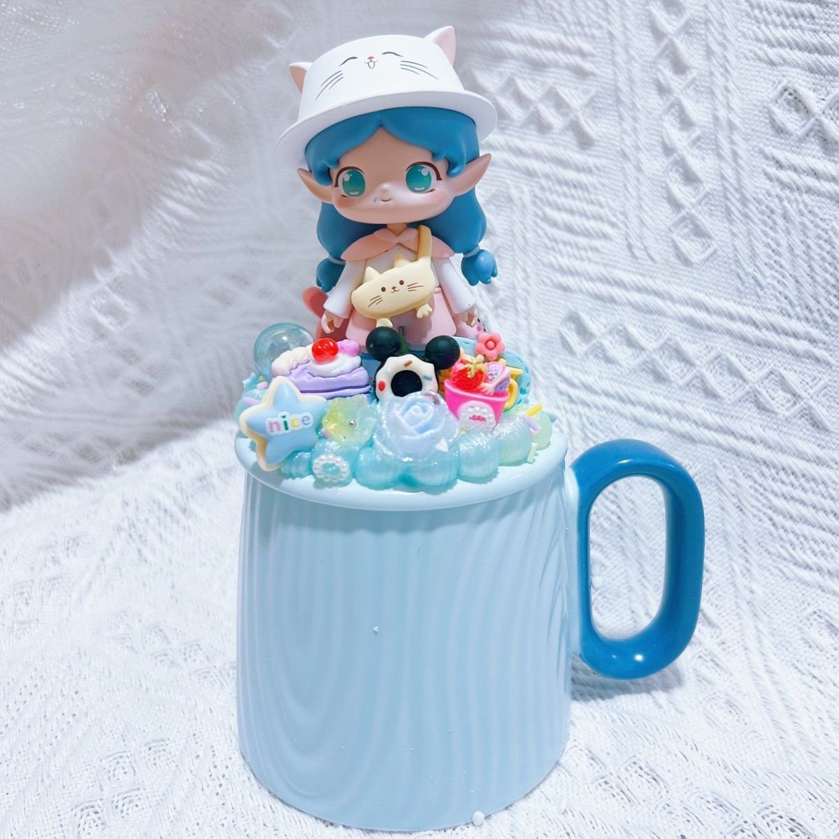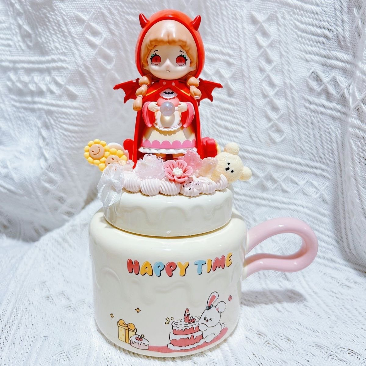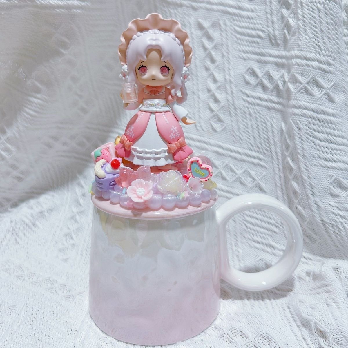 Genuine Bubble Mart Landscape Cream Glue Mug with Lid Ceramic Cup Couple Cup Water Cup Creative Cute