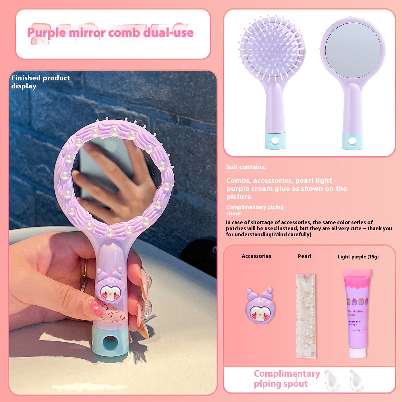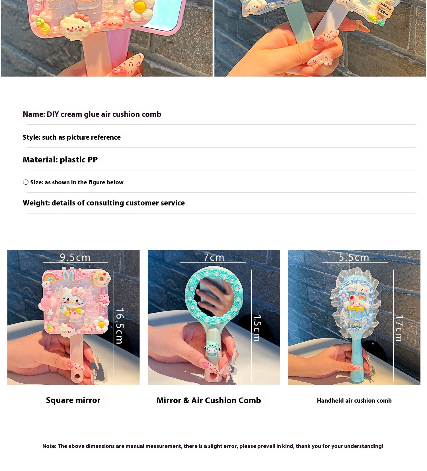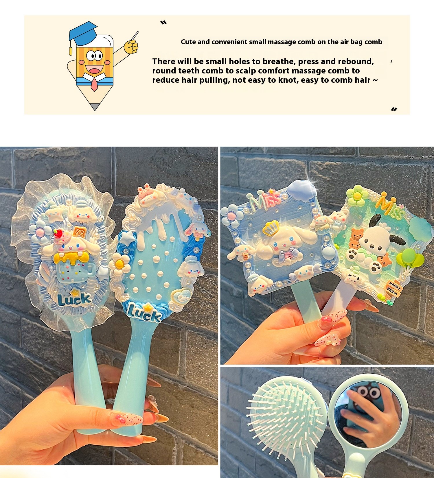 | Color | Pink Mirror Comb Integrated Bow Tie Cat Hanging Chain, Purple Mirror Comb Integrated Sanrio Hanging Chain, Green Mirror Comb One-piece Parchal Dog Hanging Chain, Blue Mirror Comb One Big Ear Dog Hanging Chain, [clip head bag] green mirror comb one-piece cartoon puppy material package presents piping mouth, [clip head bag] purple mirror comb one-piece Sanrio material package presents piping mouth, [clip head bag] blue mirror comb one-piece big ear dog material package presents piping mouth, [clip head bag] yellow square mirror comb one-piece pudding dog material package presents piping mouth, [clip head bag] purple square mirror comb integrated kulomi material package presents piping nozzle, [clip head bag] pink square mirror comb one strawberry bear material package presents piping mouth, [clip head bag] pink square mirror comb integrated melody material package presents piping nozzle, [card head bag] blue square mirror comb one-piece jade cinnamon dog material package presents piping mouth, [clip head bag] lotus root color square mirror comb one-piece Parchal dog material package presents piping mouth, [card head bag] yellow hand-held air cushion comb cute little yellow dog material package to send piping mouth [fluid]], [clip head bag] purple hand-held air cushion comb Sanrio material package to send piping mouth [fluid]], [clip head bag] pink hand-held air cushion comb cute big ear dog material package to send piping mouth [fluid]], [card head bag] blue hand-held air cushion comb cute jade cinnamon dog material package to send piping mouth [fluid]], [clip head bag] blue hand-held air cushion comb big ear dog lace material package to send piping mouth, [clip head bag] purple hand-held air cushion comb kulomi lace material package for piping nozzle, [clip head bag] pink hand-held air cushion comb KT cat lace material package for piping nozzle, [clip head bag] yellow hand-held air cushion comb pudding dog lace material package for piping nozzle, [clip head bag] lotus root color square mirror comb integrated KT cat material package presents piping mouth, [clip head bag] pink mirror comb integrated flower kitten material package presents piping mouth, Blue mirror comb one, Green mirror comb one, Purple mirror comb one, Pink mirror comb one, Yellow square mirror comb one, Purple Square Mirror Comb One, Lotus color square mirror comb one, pink square mirror comb one, Pink square mirror comb one, light blue square mirror comb one, light blue hand-held air cushion comb, Yellow hand-held air cushion comb, Purple hand-held air cushion comb, Pink hand-held air cushion comb |