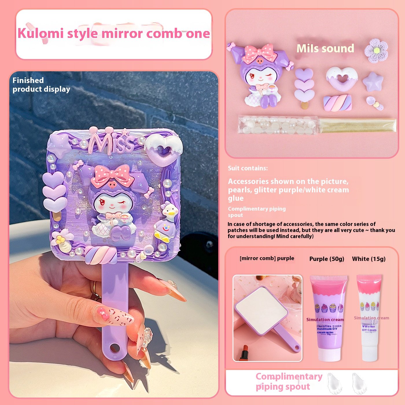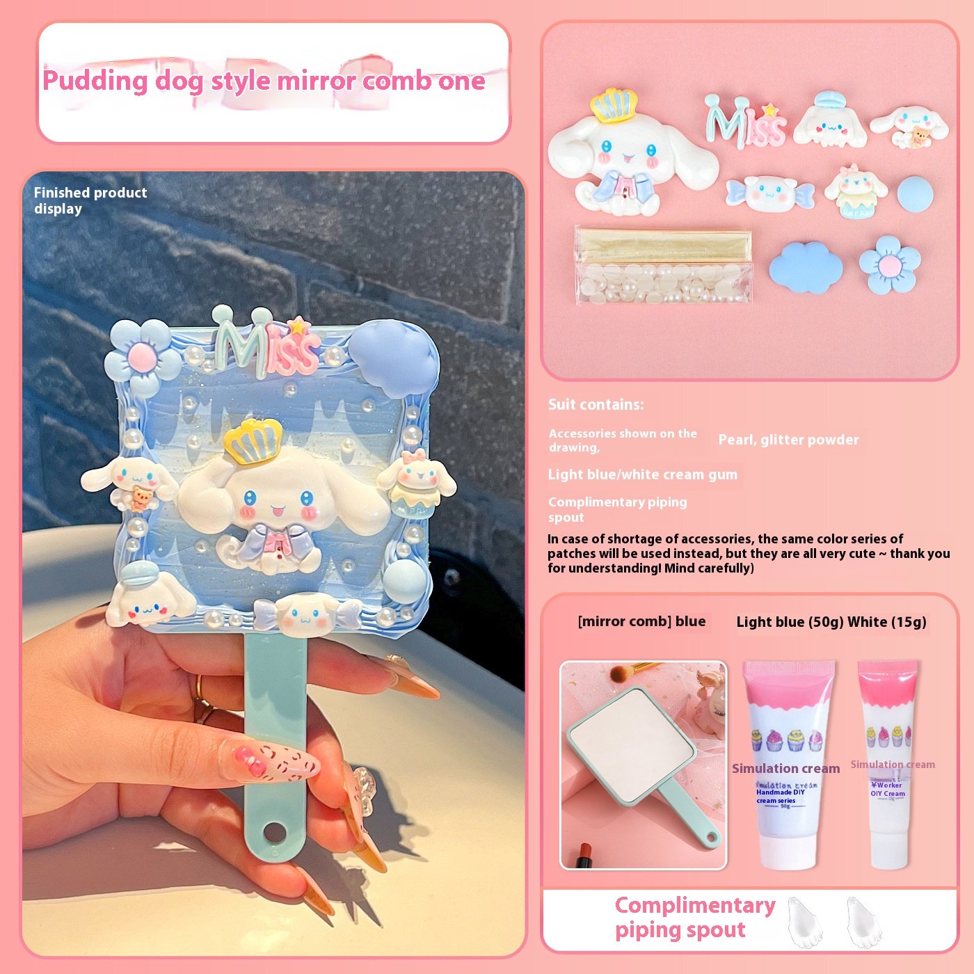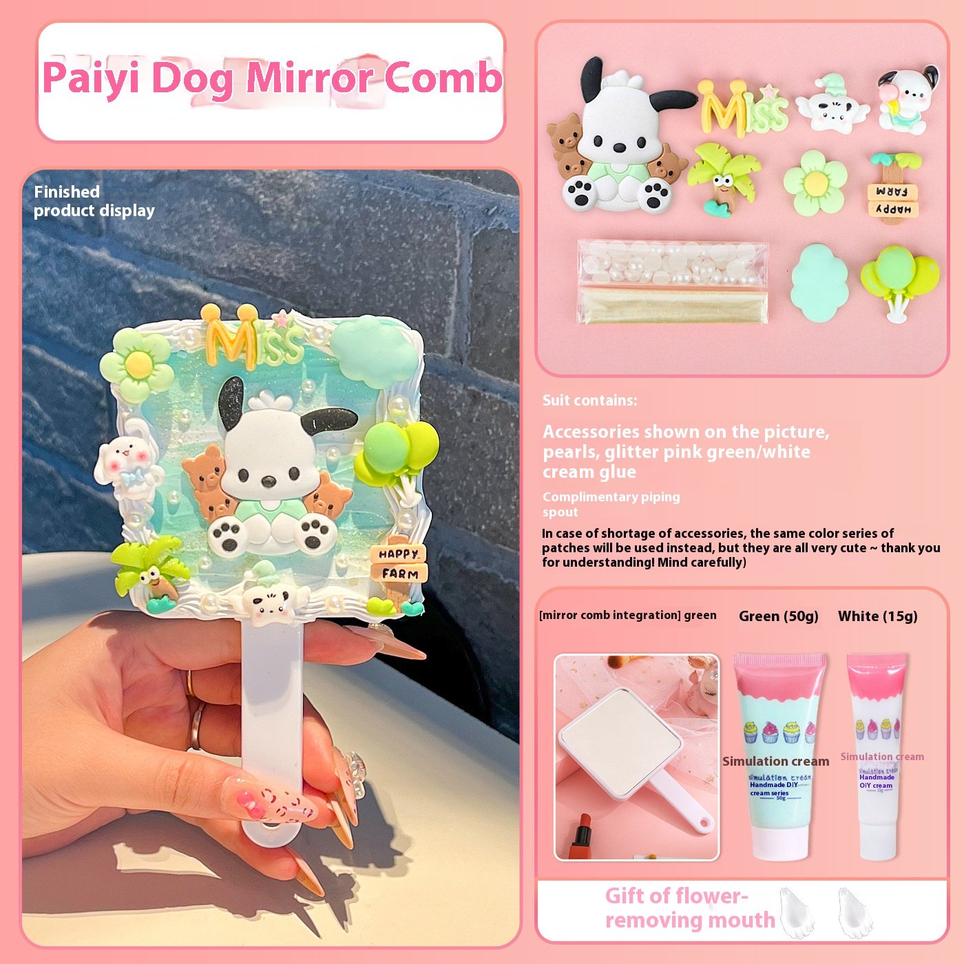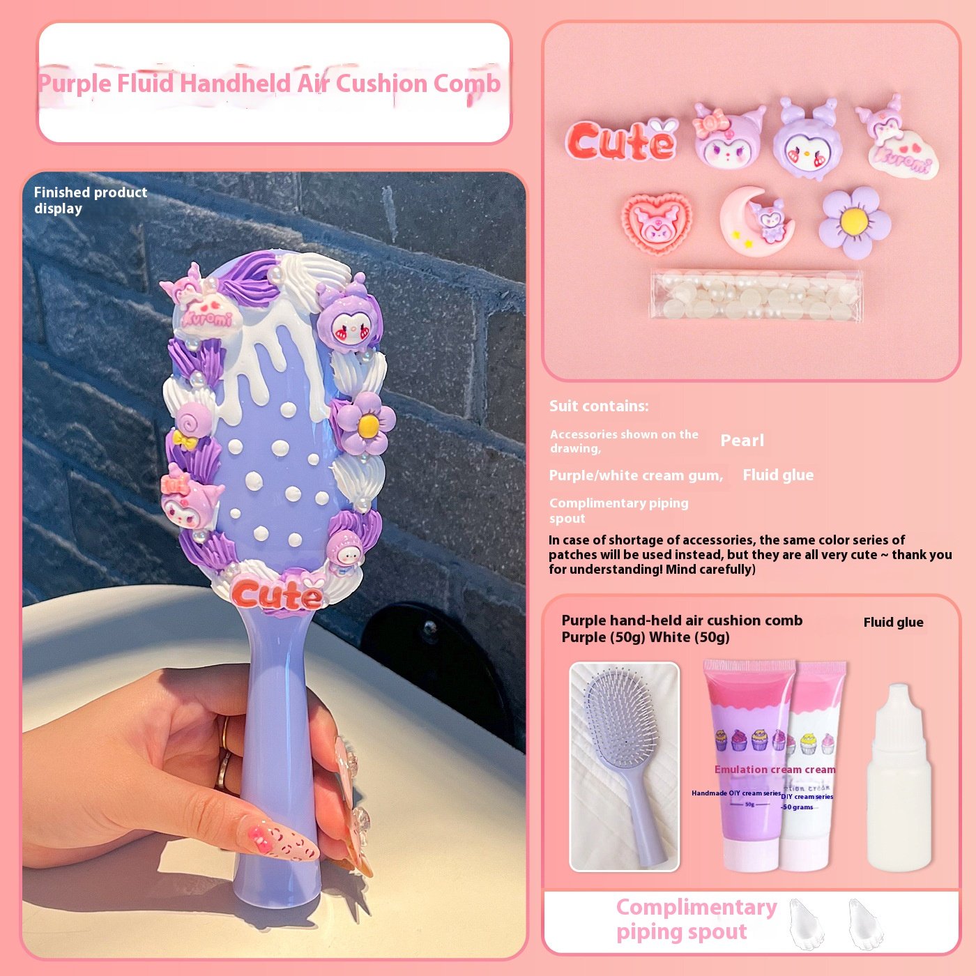 | Color | Pink Mirror Comb Integrated Bow Tie Cat Hanging Chain, Purple Mirror Comb Integrated Sanrio Hanging Chain, Green Mirror Comb One-piece Parchal Dog Hanging Chain, Blue Mirror Comb One Big Ear Dog Hanging Chain, [clip head bag] green mirror comb one-piece cartoon puppy material package presents piping mouth, [clip head bag] purple mirror comb one-piece Sanrio material package presents piping mouth, [clip head bag] blue mirror comb one-piece big ear dog material package presents piping mouth, [clip head bag] yellow square mirror comb one-piece pudding dog material package presents piping mouth, [clip head bag] purple square mirror comb integrated kulomi material package presents piping nozzle, [clip head bag] pink square mirror comb one strawberry bear material package presents piping mouth, [clip head bag] pink square mirror comb integrated melody material package presents piping nozzle, [card head bag] blue square mirror comb one-piece jade cinnamon dog material package presents piping mouth, [clip head bag] lotus root color square mirror comb one-piece Parchal dog material package presents piping mouth, [card head bag] yellow hand-held air cushion comb cute little yellow dog material package to send piping mouth [fluid]], [clip head bag] purple hand-held air cushion comb Sanrio material package to send piping mouth [fluid]], [clip head bag] pink hand-held air cushion comb cute big ear dog material package to send piping mouth [fluid]], [card head bag] blue hand-held air cushion comb cute jade cinnamon dog material package to send piping mouth [fluid]], [clip head bag] blue hand-held air cushion comb big ear dog lace material package to send piping mouth, [clip head bag] purple hand-held air cushion comb kulomi lace material package for piping nozzle, [clip head bag] pink hand-held air cushion comb KT cat lace material package for piping nozzle, [clip head bag] yellow hand-held air cushion comb pudding dog lace material package for piping nozzle, [clip head bag] lotus root color square mirror comb integrated KT cat material package presents piping mouth, [clip head bag] pink mirror comb integrated flower kitten material package presents piping mouth, Blue mirror comb one, Green mirror comb one, Purple mirror comb one, Pink mirror comb one, Yellow square mirror comb one, Purple Square Mirror Comb One, Lotus color square mirror comb one, pink square mirror comb one, Pink square mirror comb one, light blue square mirror comb one, light blue hand-held air cushion comb, Yellow hand-held air cushion comb, Purple hand-held air cushion comb, Pink hand-held air cushion comb |