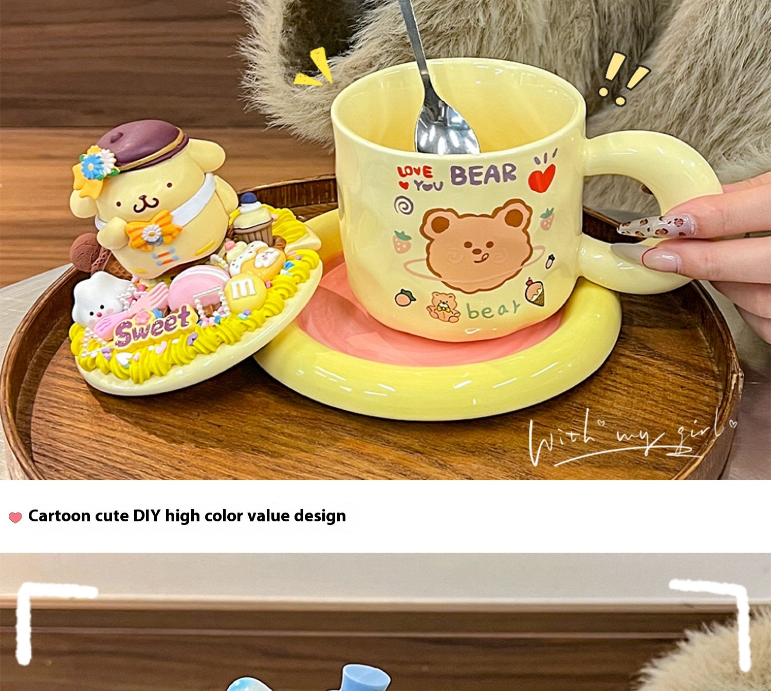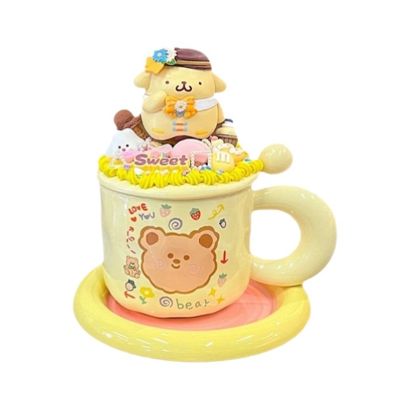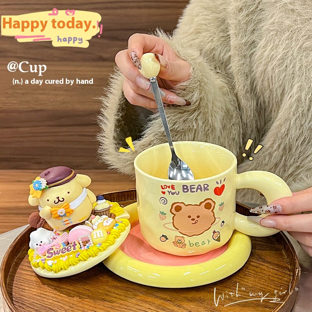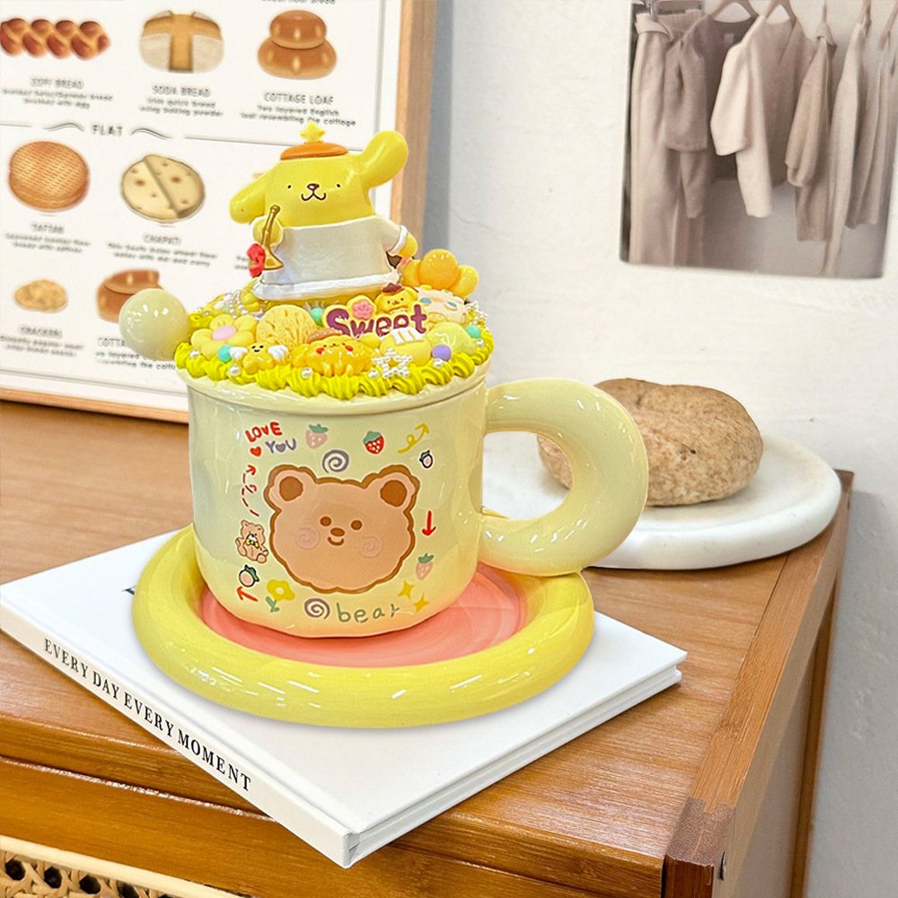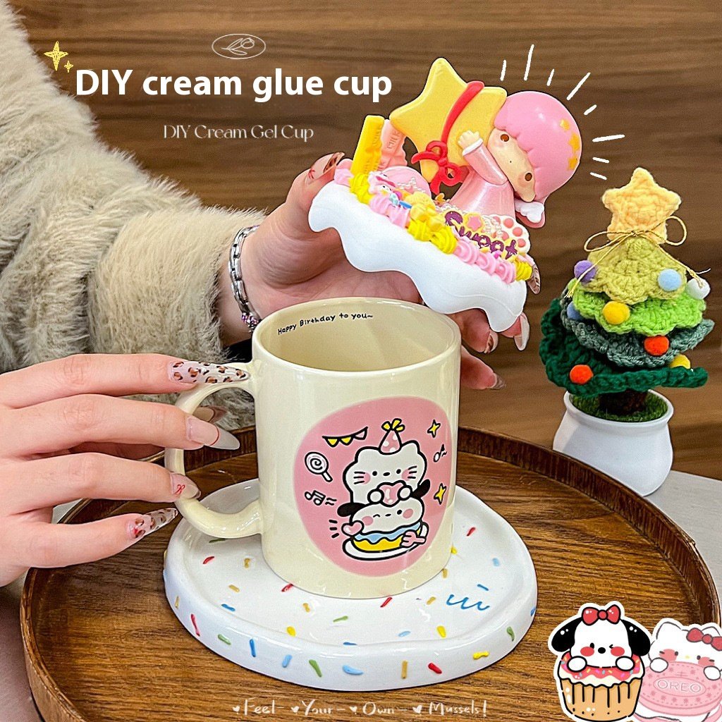 Cream glue diy mug handmade material bag ins high color value cartoon ceramic couple breakfast coffee cup