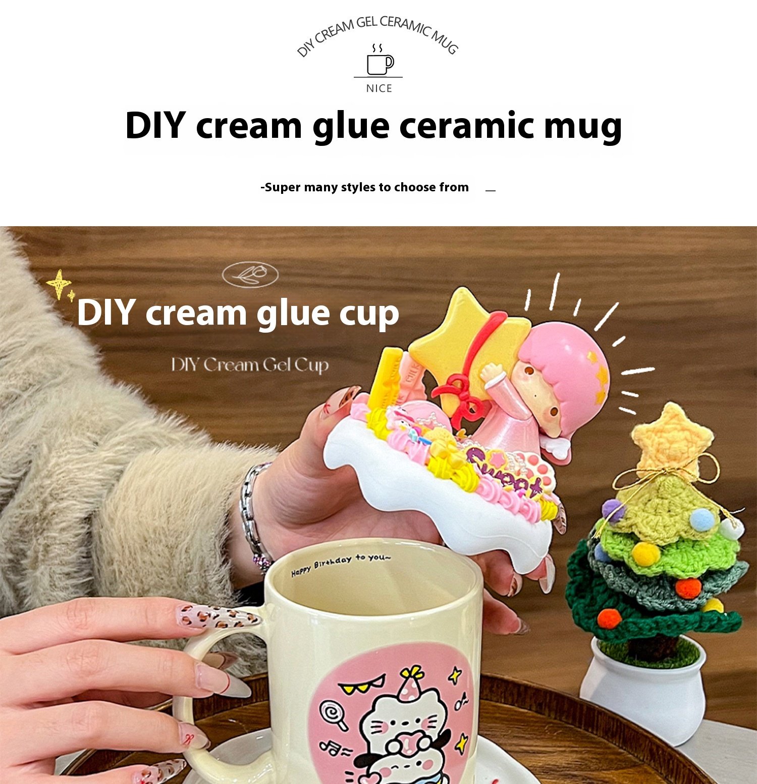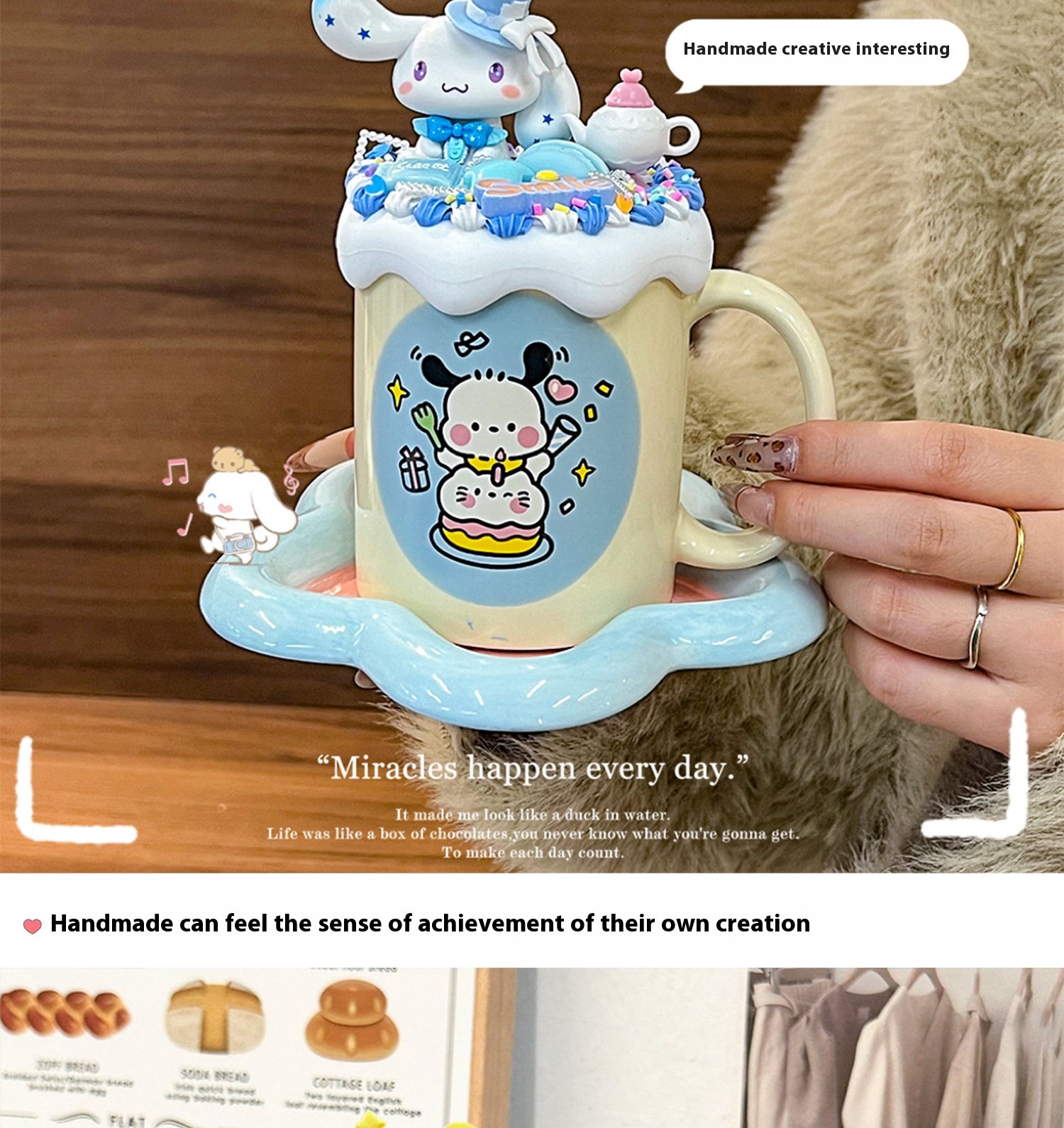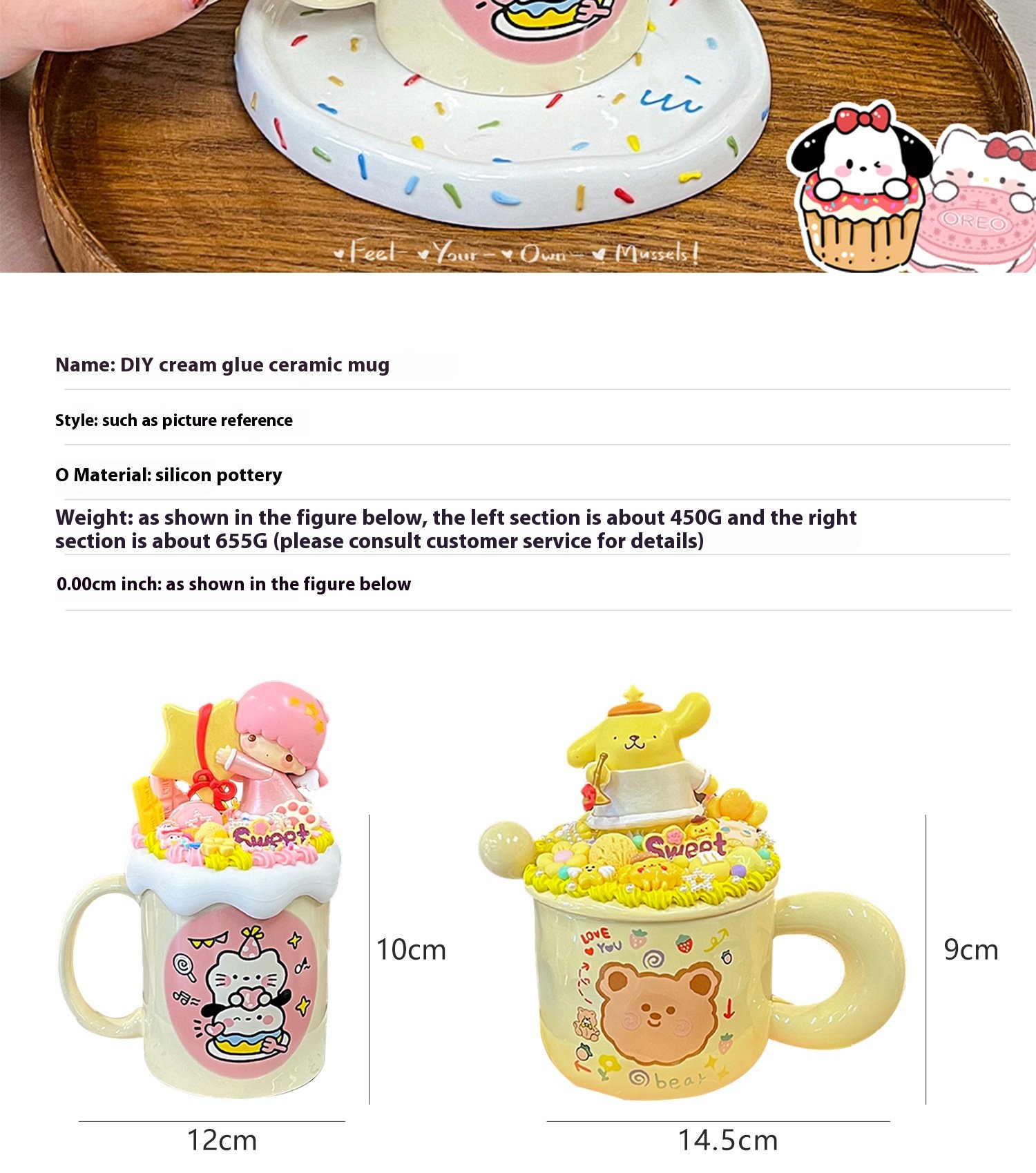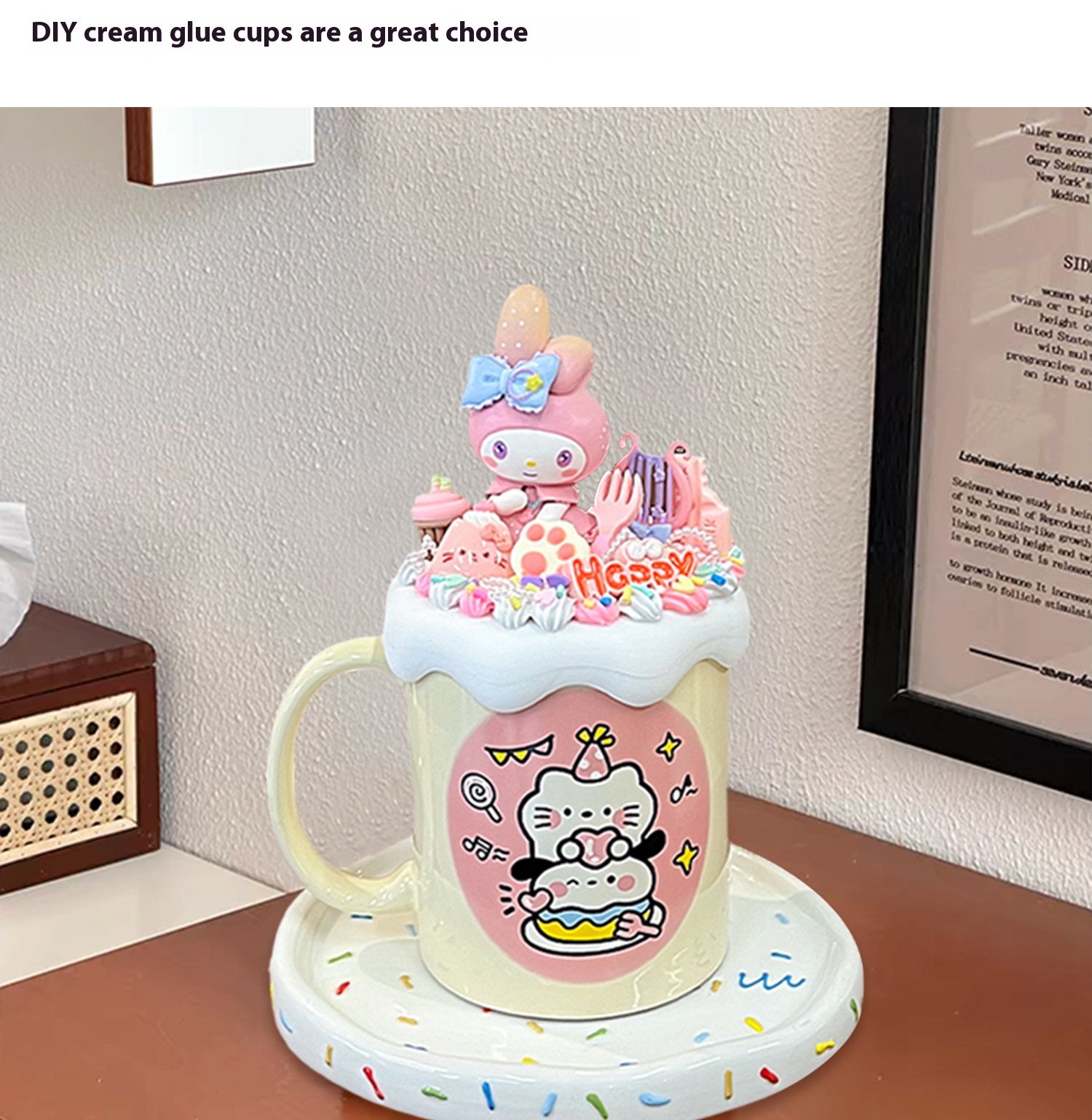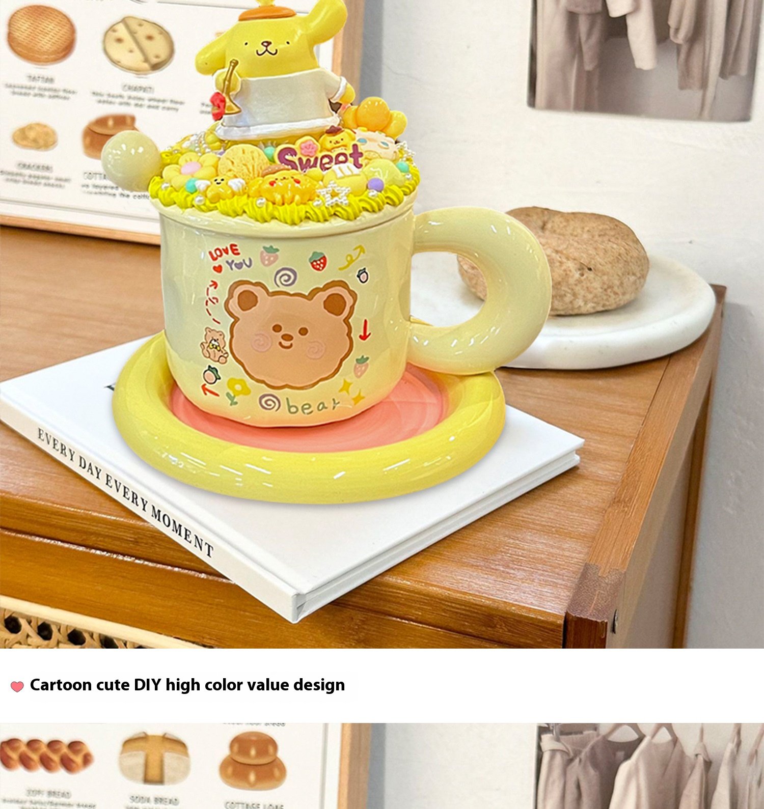 Cream glue diy mug handmade material bag ins high color value cartoon ceramic couple breakfast coffee cup