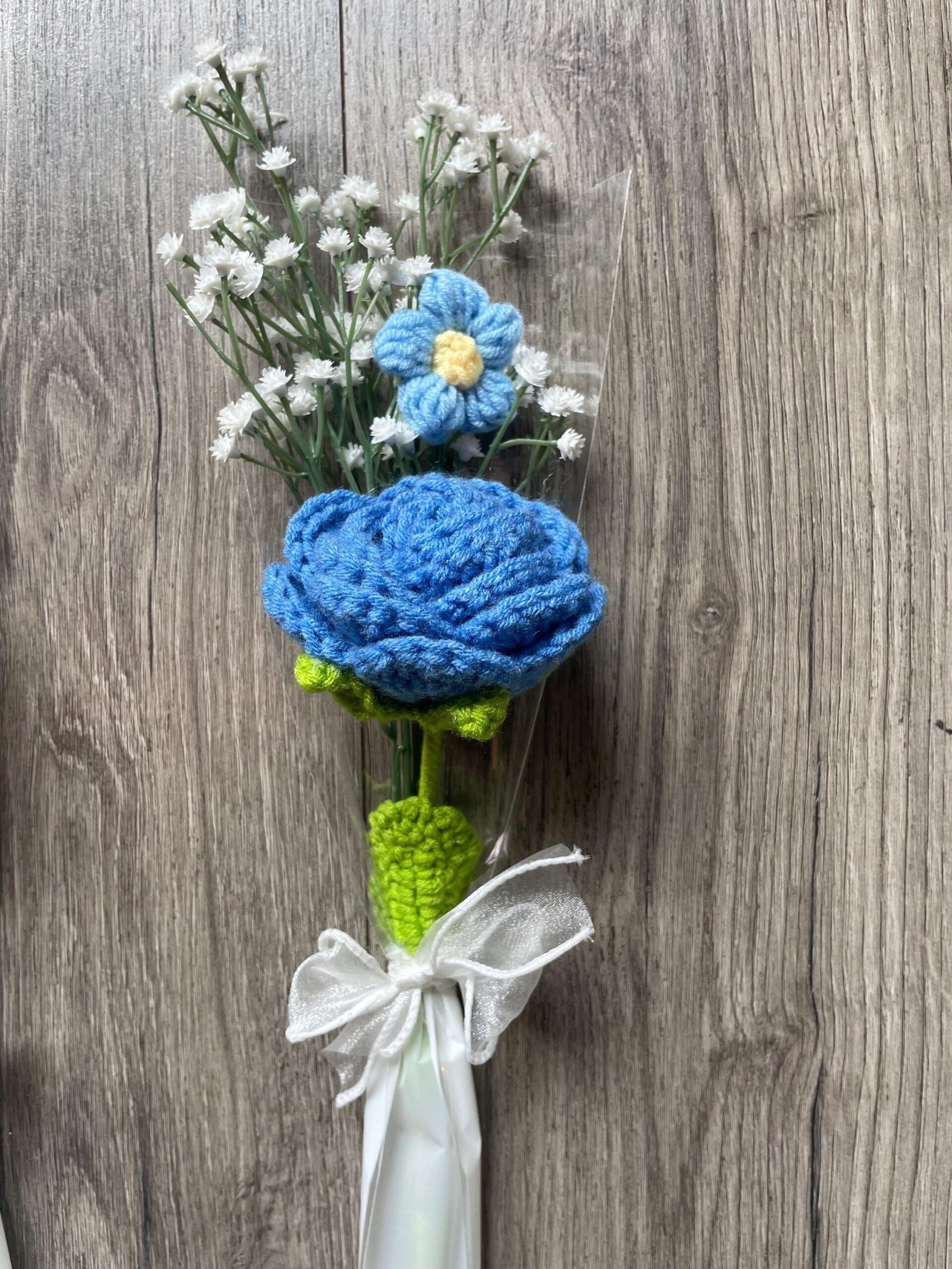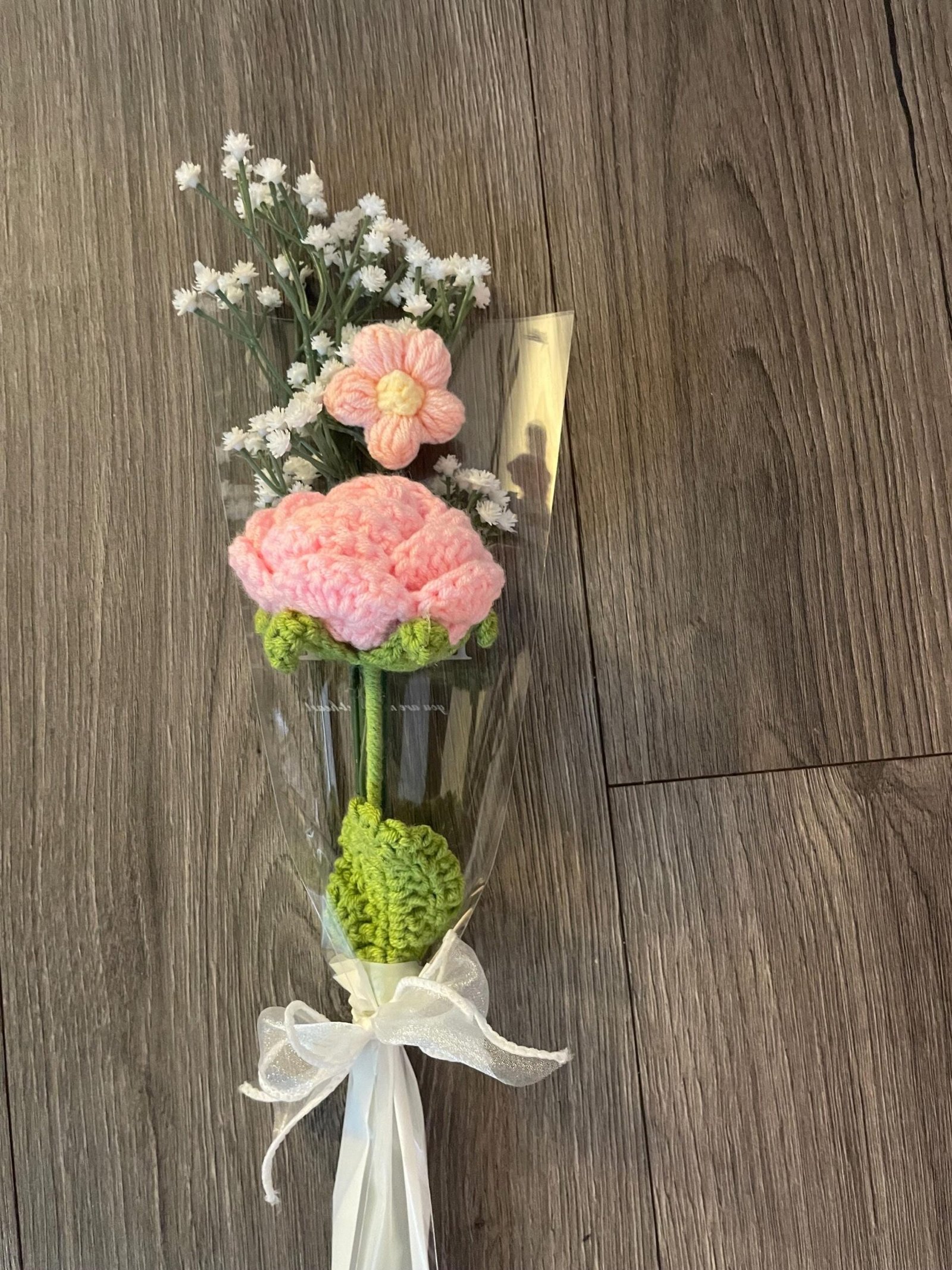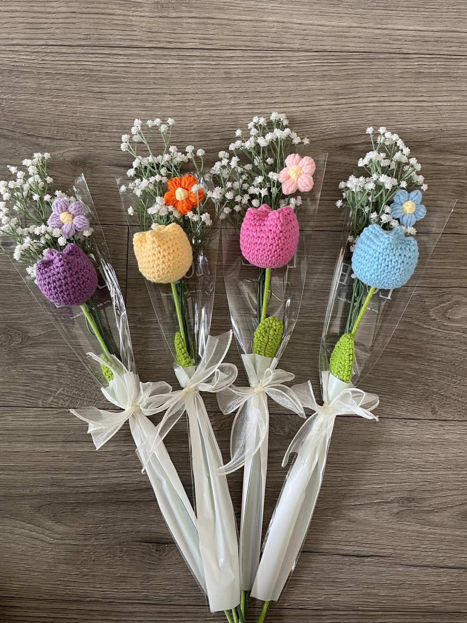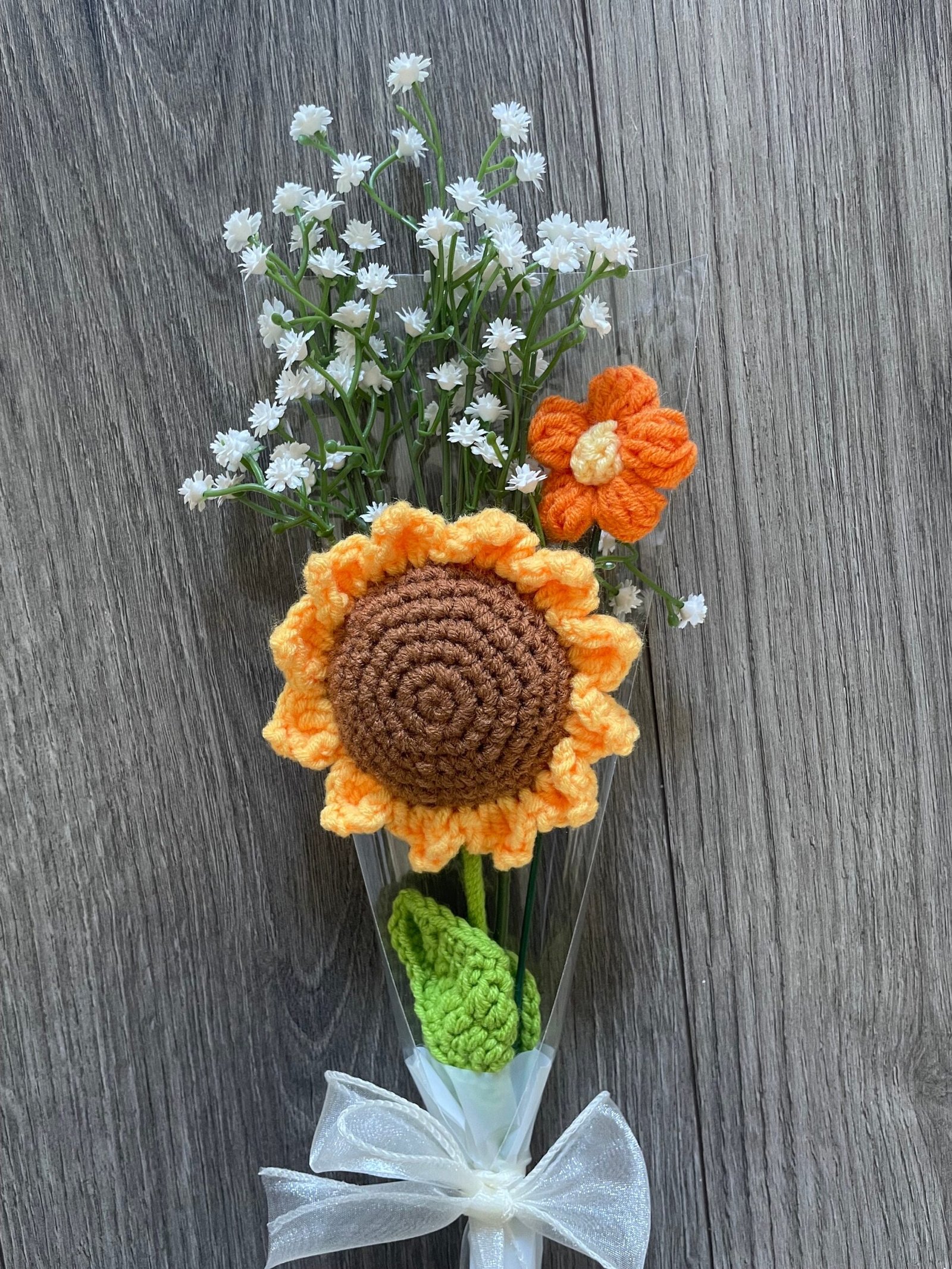 These crochet bouquet are a cozy touch to any occasion. Great as a gift for a loved one or as a unique party/wedding favor for guests! 16 inches long