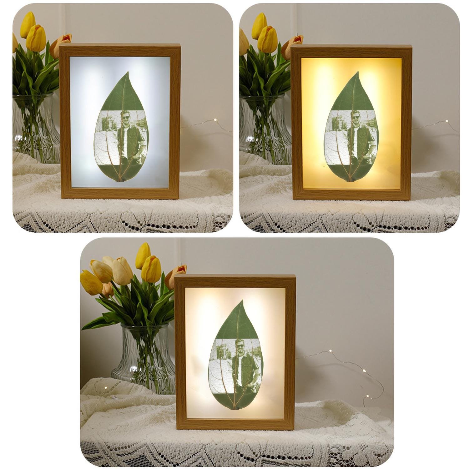 Customized Carving Leaf Photos, Personalized Art gift with 3 Colors Touch Led Light photo 8 inch frame album