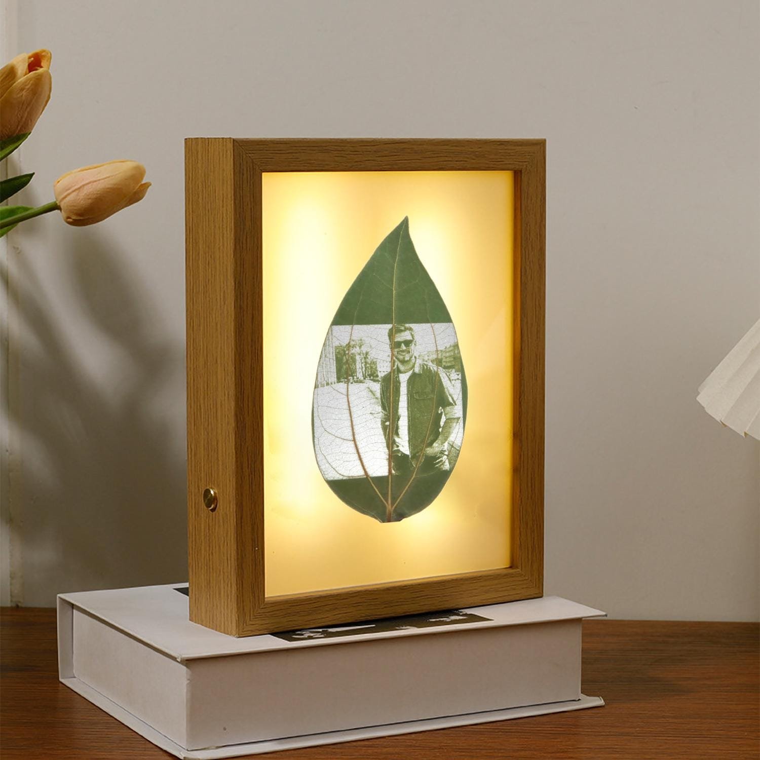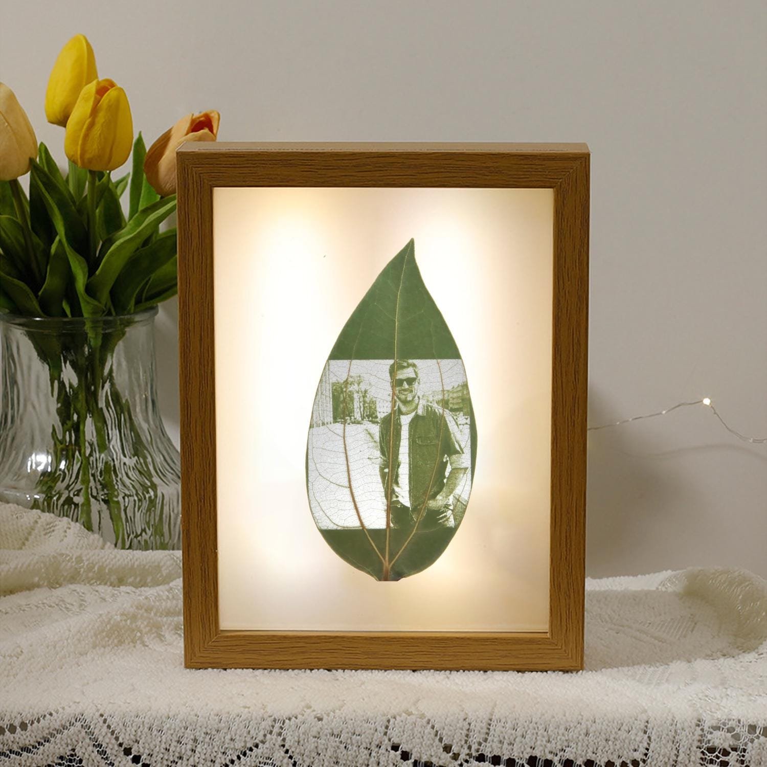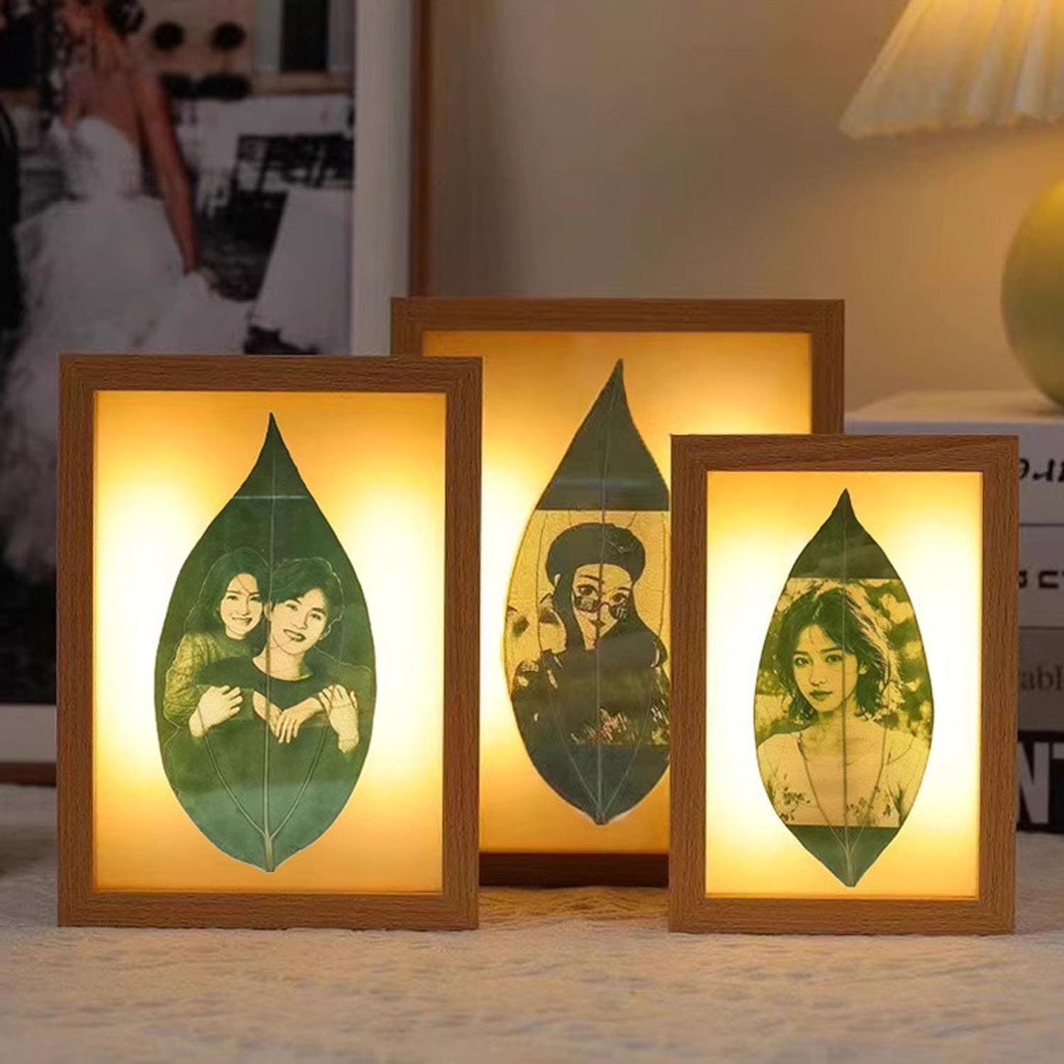 【8-inch LED Photo Frame】Your custom leaf carving comes with a high-quality 8-inch photo frame with 3-color LED lights for display at home or in the office.