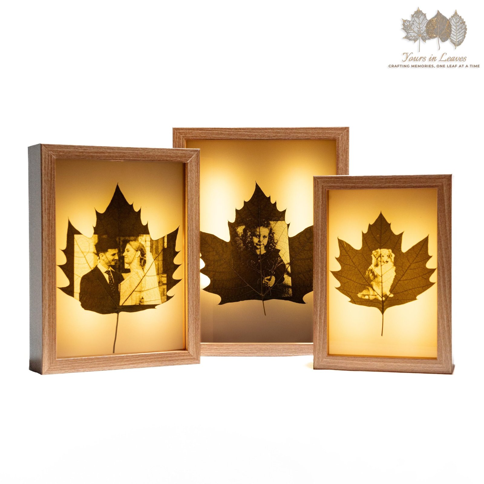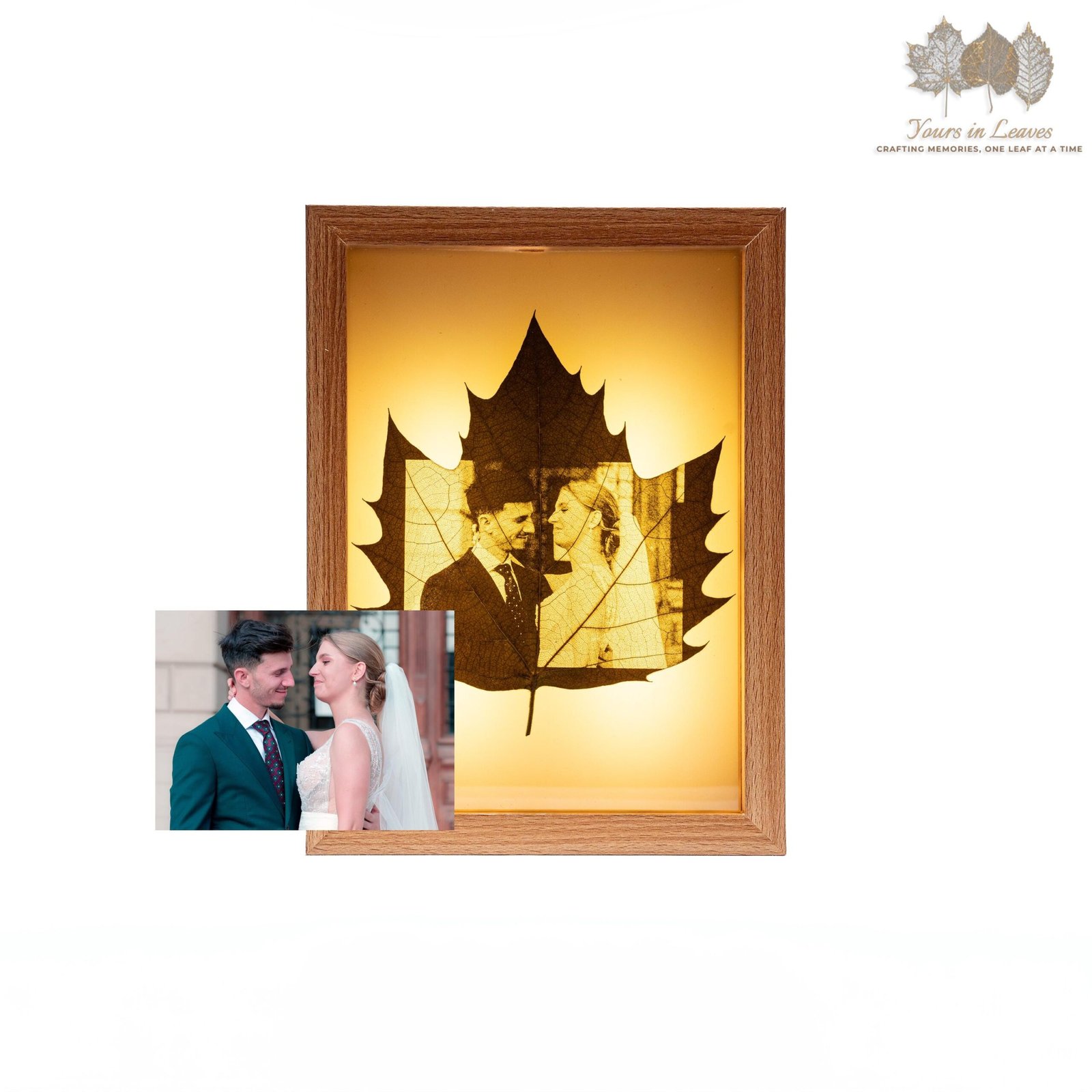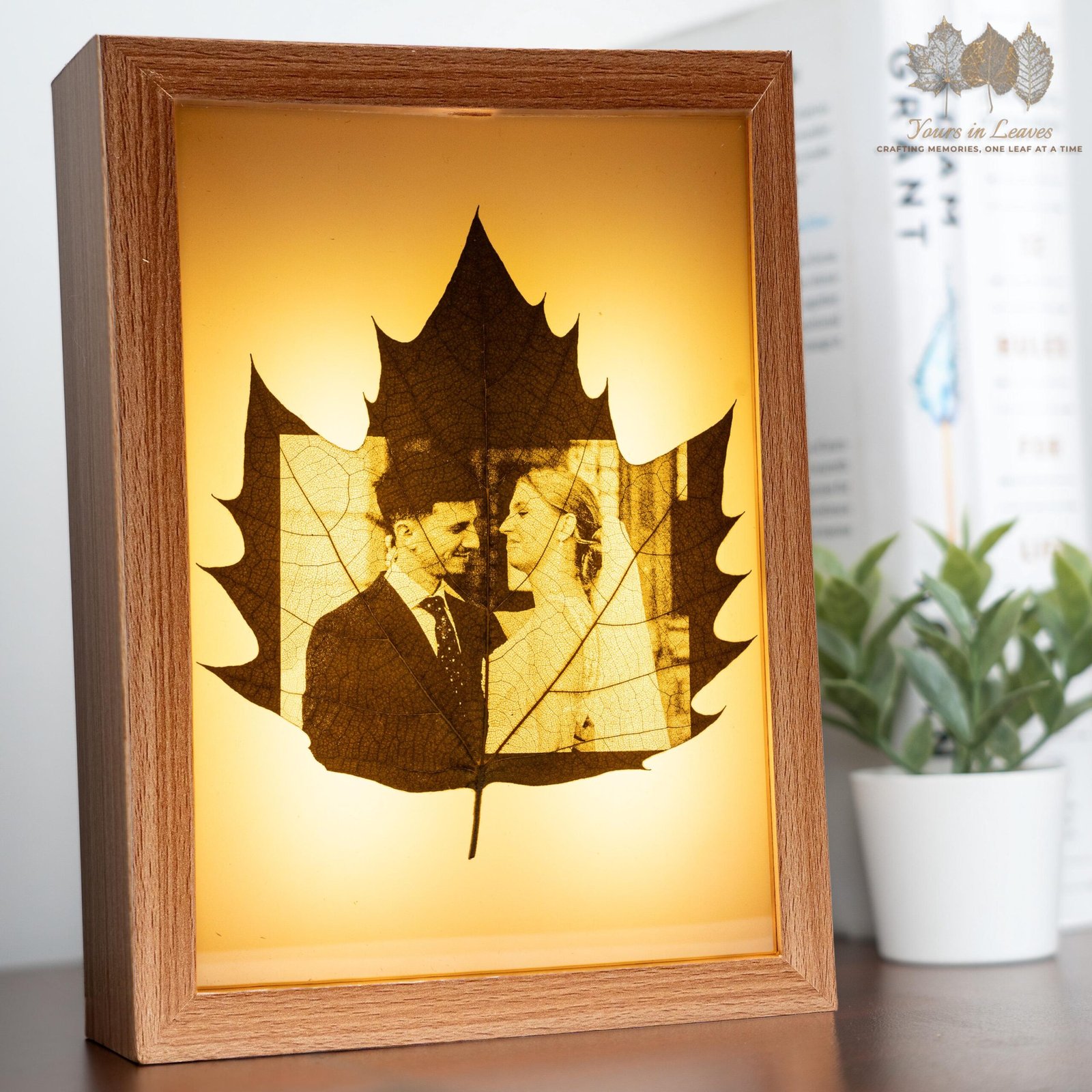 Customized Leaf Carving Photos Art, Personalized gift, Personalized Leaf Photos, Picture Frame Leaf Art, Wood Photo Frame, Anniversary Gift