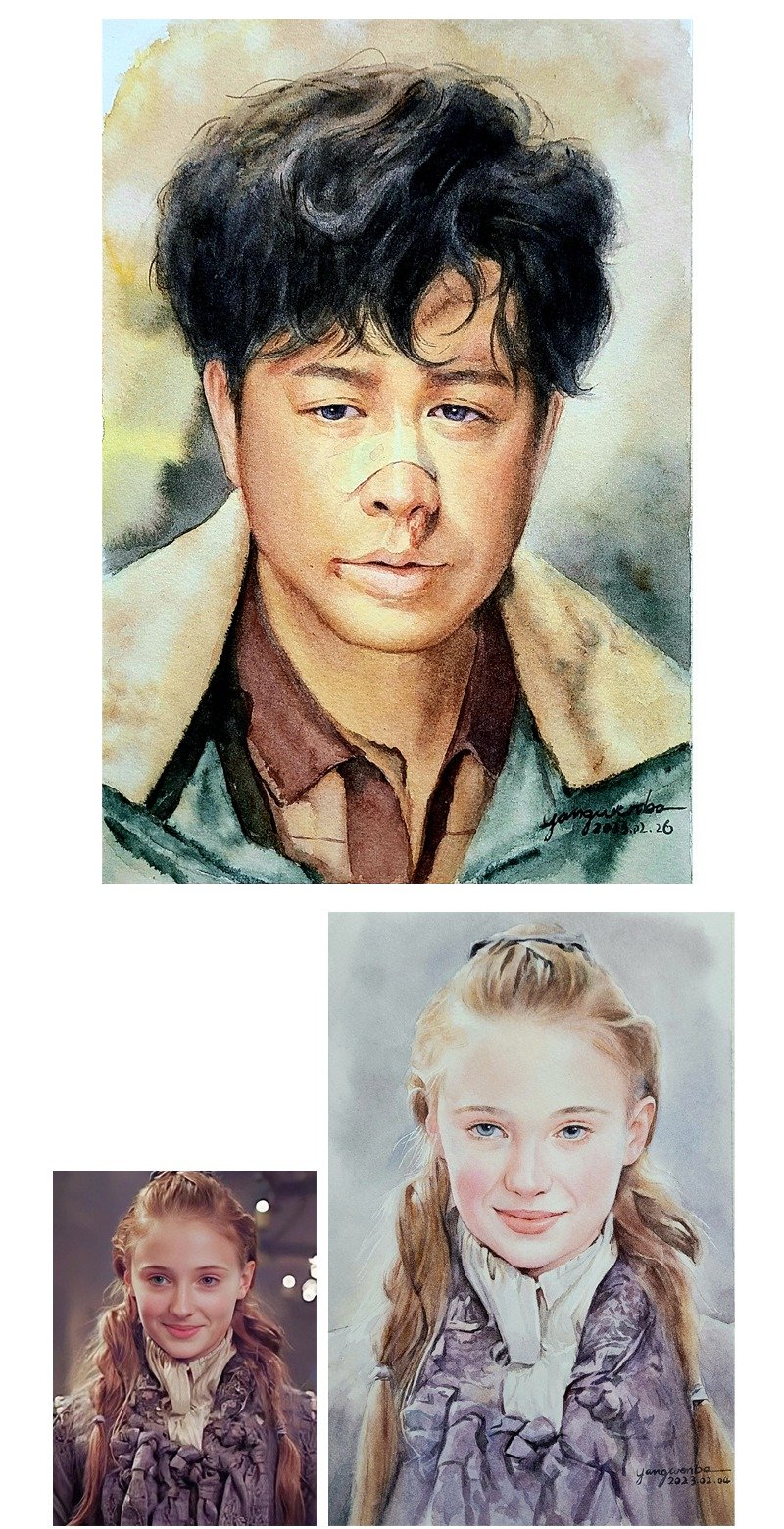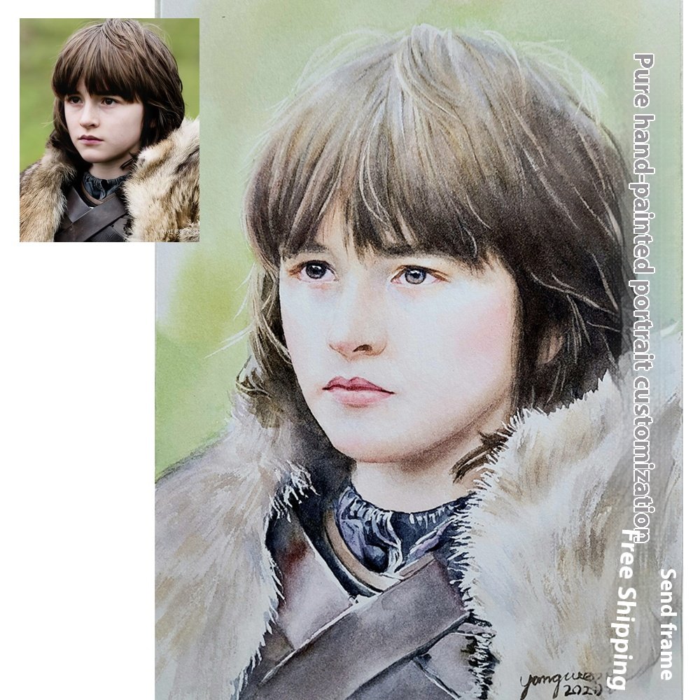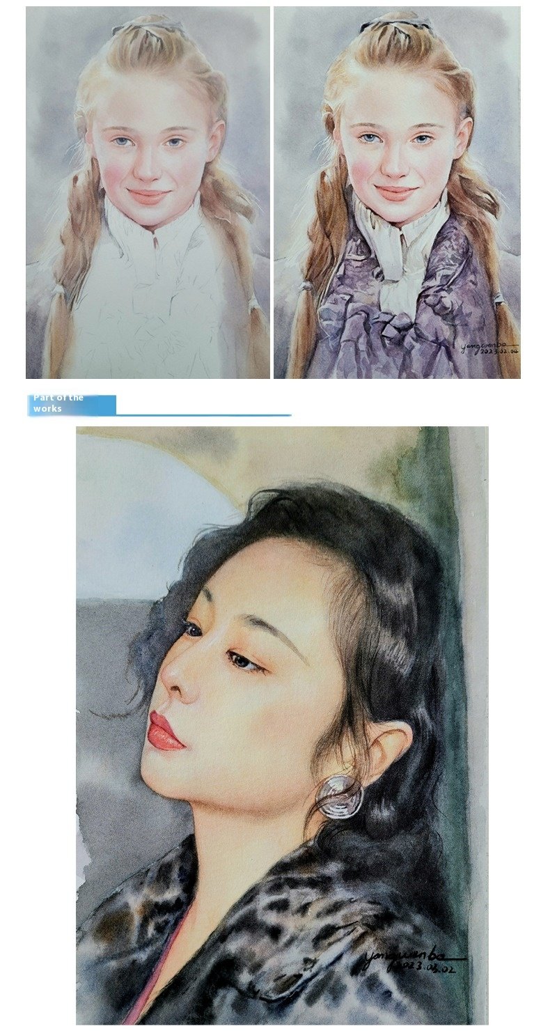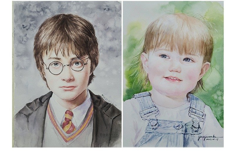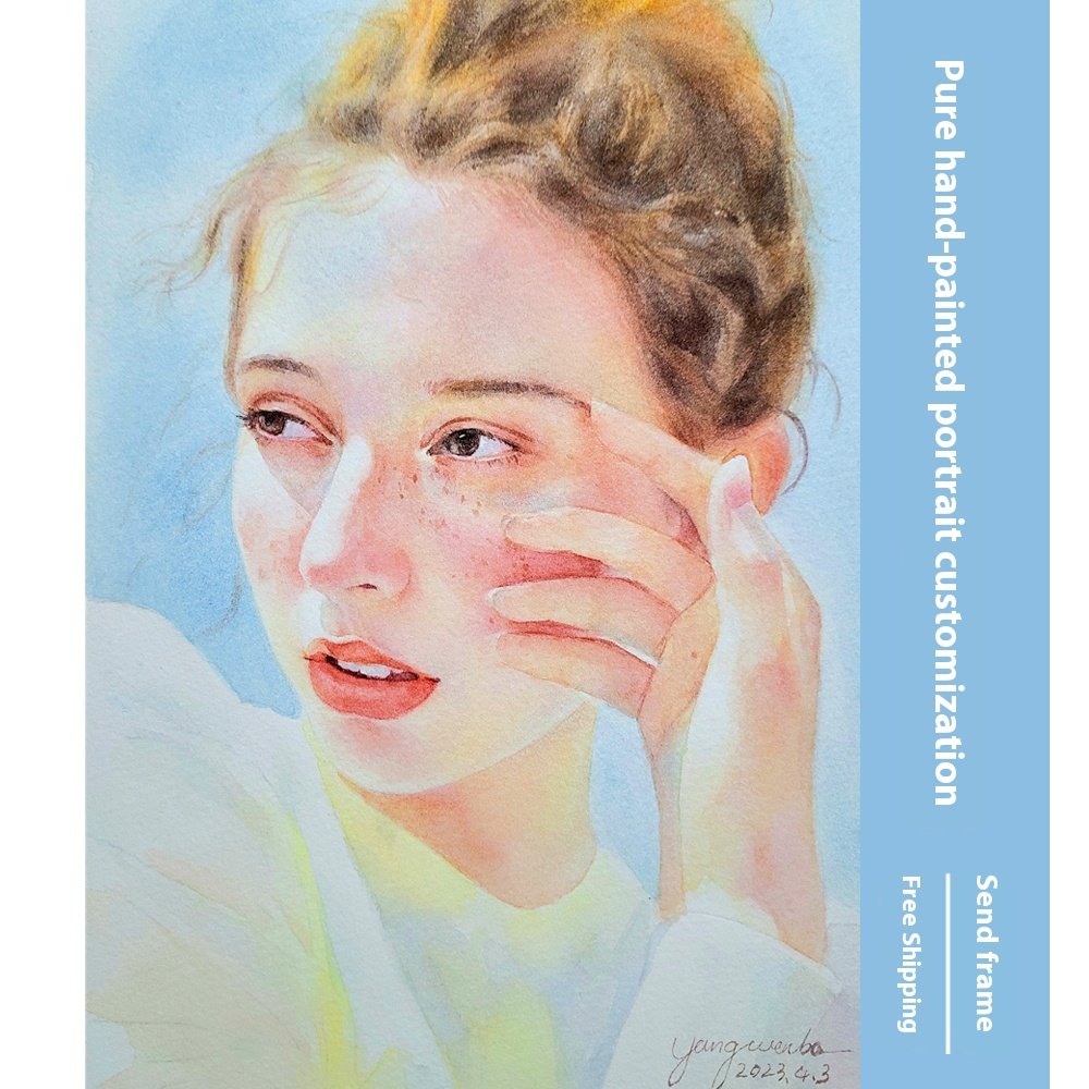 Hand -painted by live -action photo, sketching color lead portrait, watercolor portrait customization
