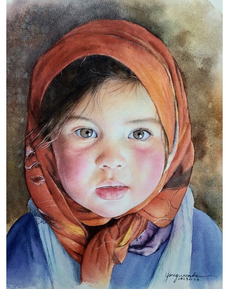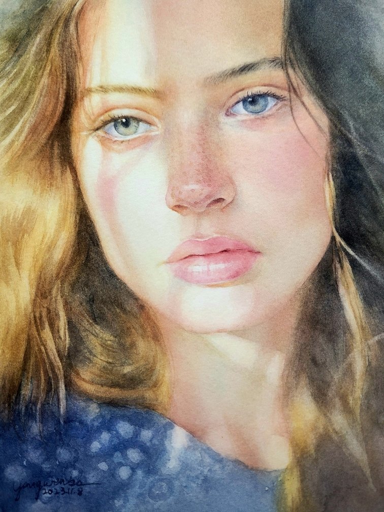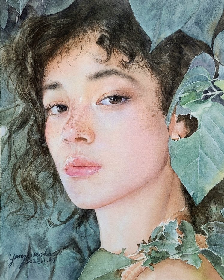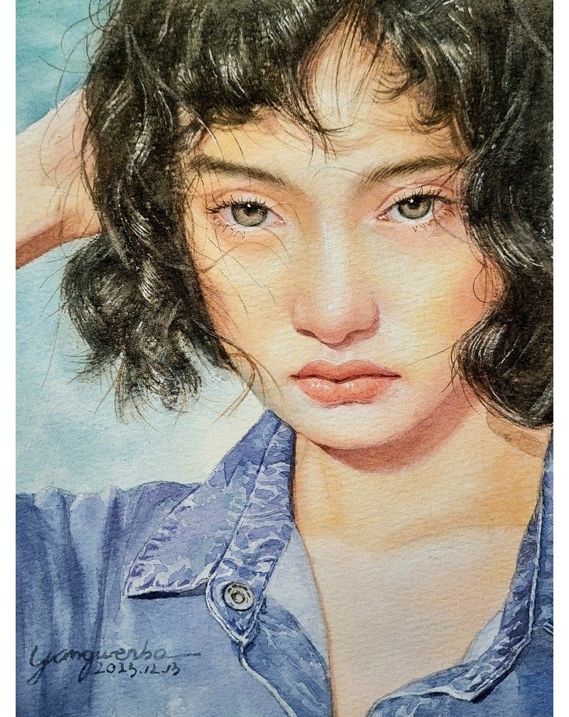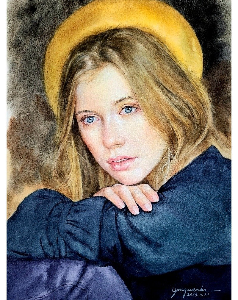 Hand -painted by live -action photo, sketching color lead portrait, watercolor portrait customization