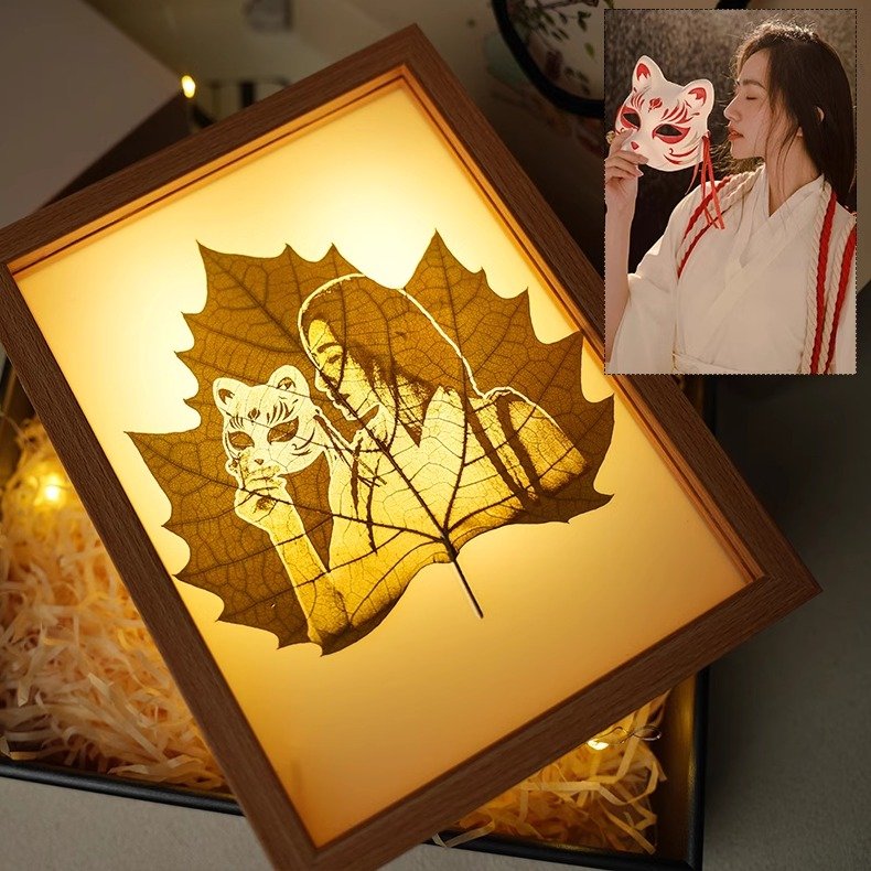 Leaf carving custom photos, teacher’s day, friends wife couple gifts, girlfriends birthday gifts, gift boxes, leaf carving