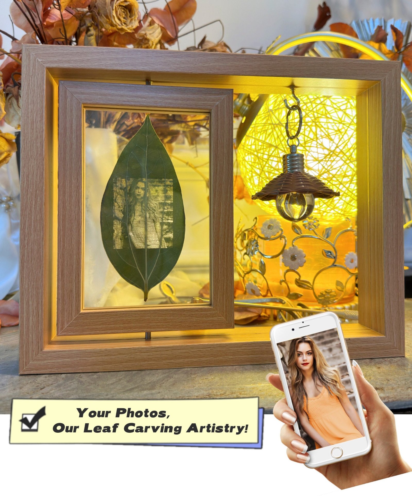 Leaf Carving Light Bulb Frame, Personalized, Unique Gift for Him/Her, Anniversary Gift, Birthday Gift, Custom Handcrafted Art, Home Decor
