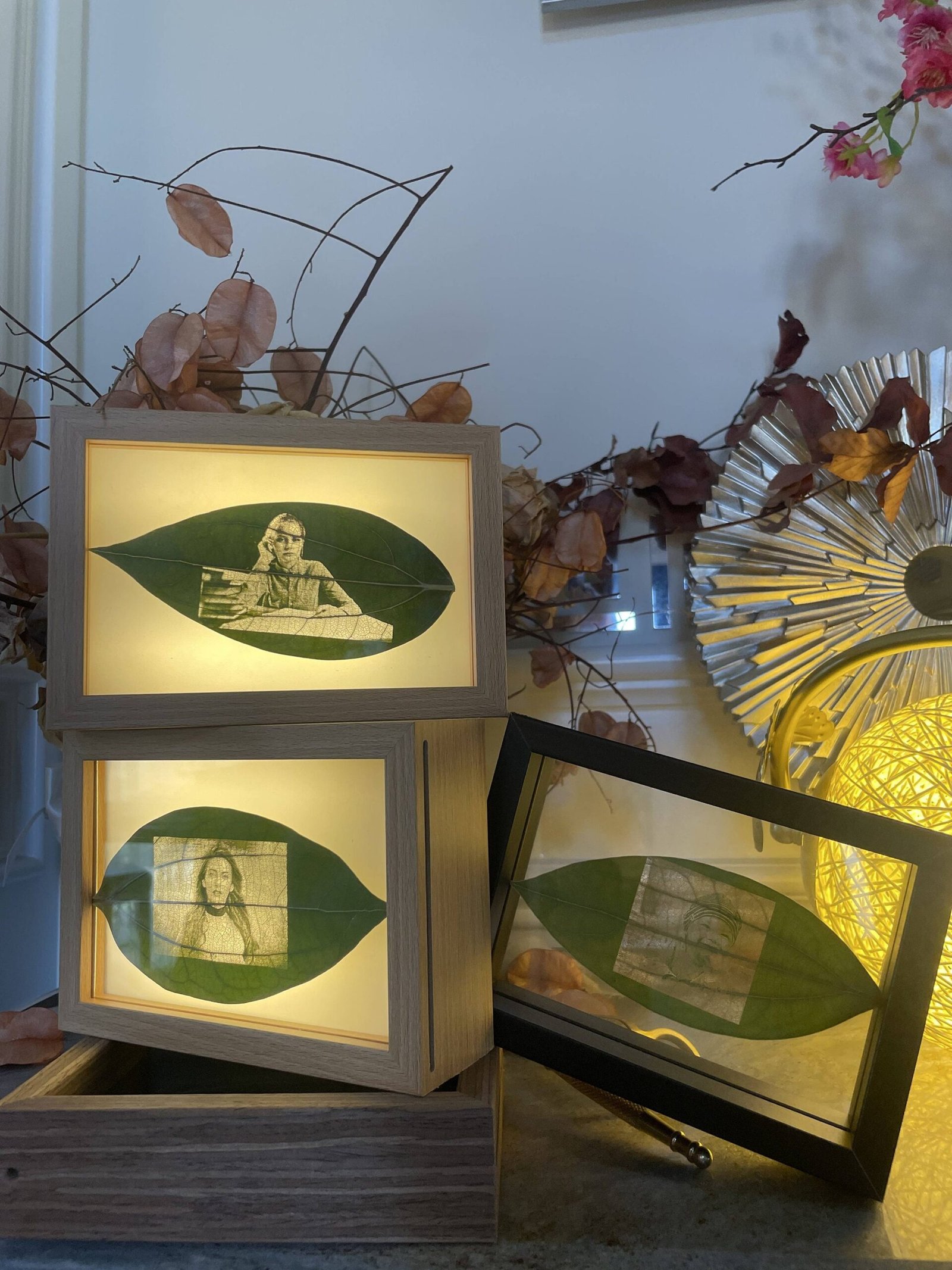 | Frame Style | Light Frame ($35.00), wooden Frame ($25.00), L Frame ($35.00), Leaf only ($9.99) |