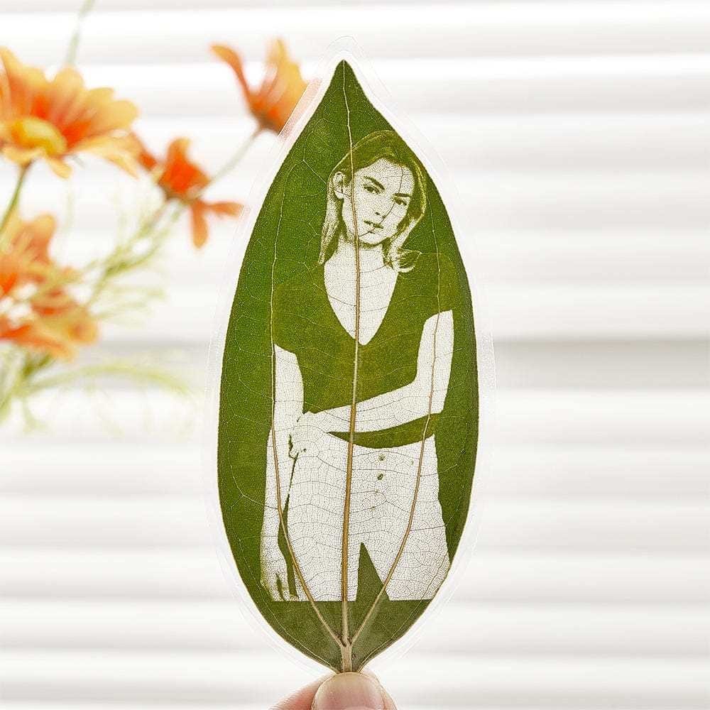 Personalized Photo Leaf Bookmark Custom Leaf Engraved Bookmarks Leaf Carving Picture Framed Art Unique Gift for Book Lover Friend Present