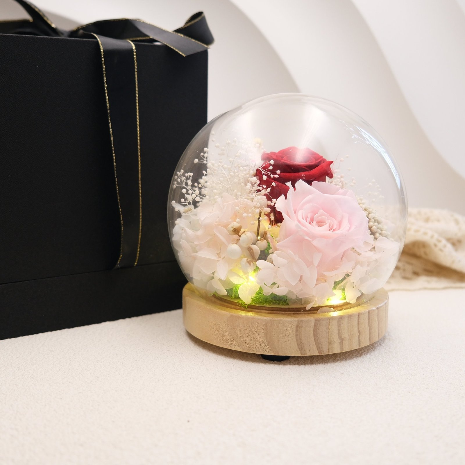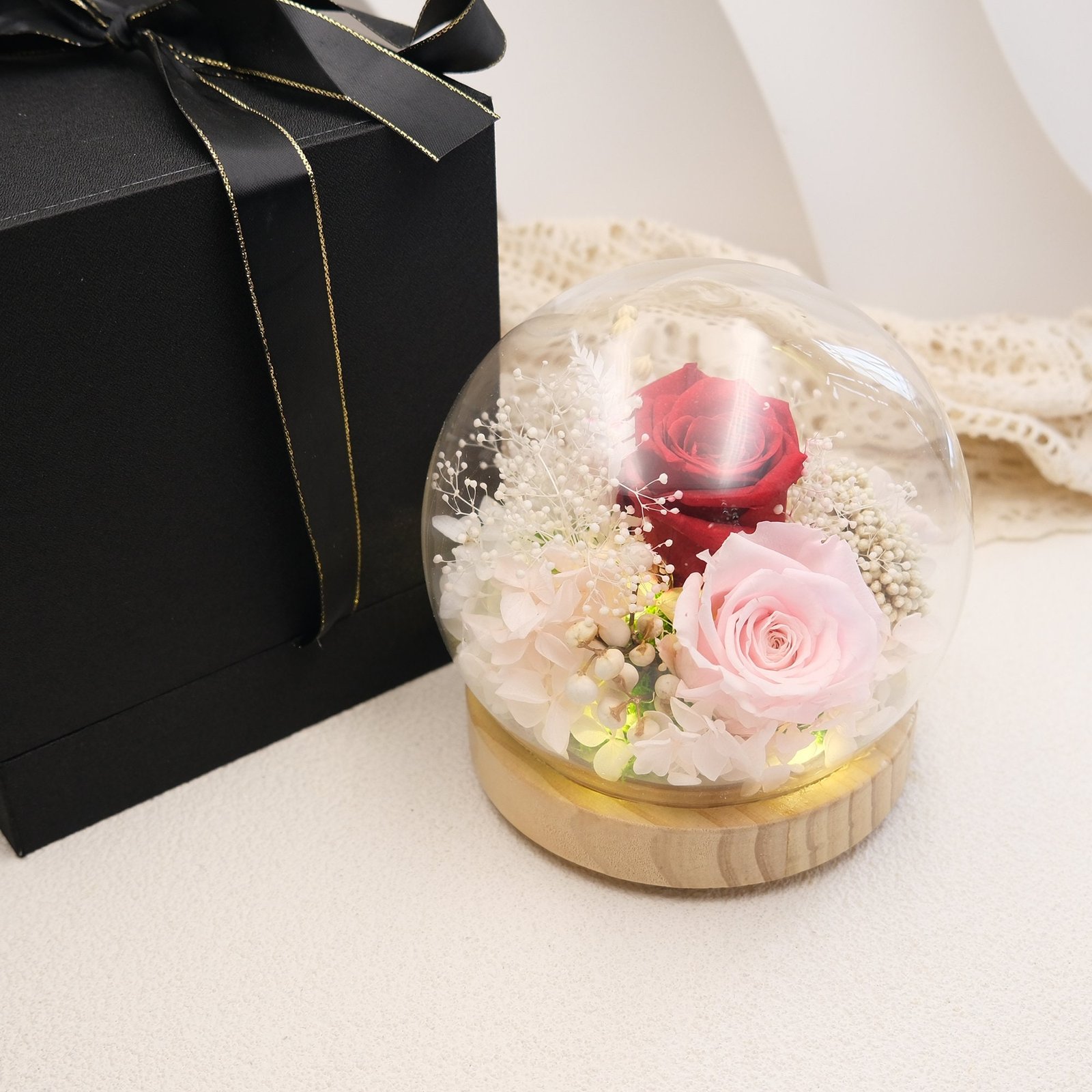 Preserved flower/Glass dome/Living room decor /Birthday, Holiday gift/Gift box/For her or him/Eternal flowers/Bridesmaid,Wedding Gift