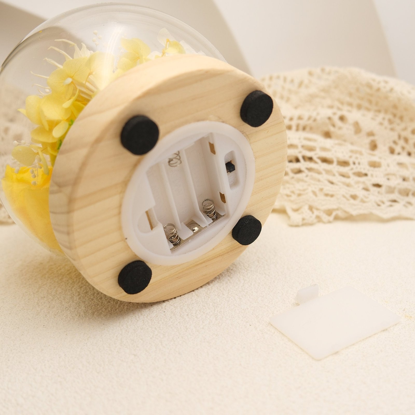 Light up: The flowers in the glass dome are wrapped around the Strip light, Powered 3 AAA battery (not included)